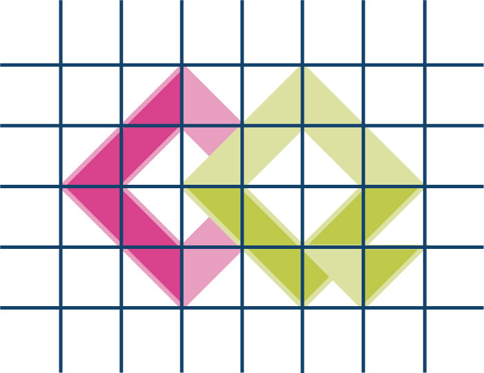 A quilting brand that creates patterns and instructions for those who want to learn how to quilt. They provide pre-cut fabric in different color ways, online tutorials, and physical instructional pattern packets. The logo and brand is intended to be fun, positive and welcoming. It is also geometric and easily replicated using fabric and the quilting process.