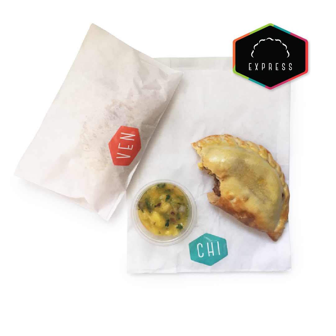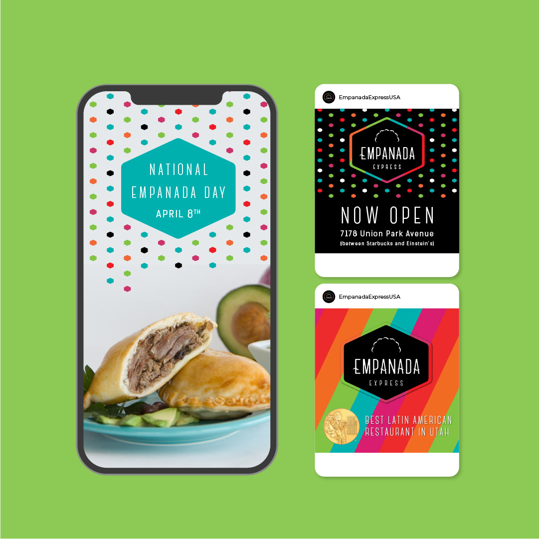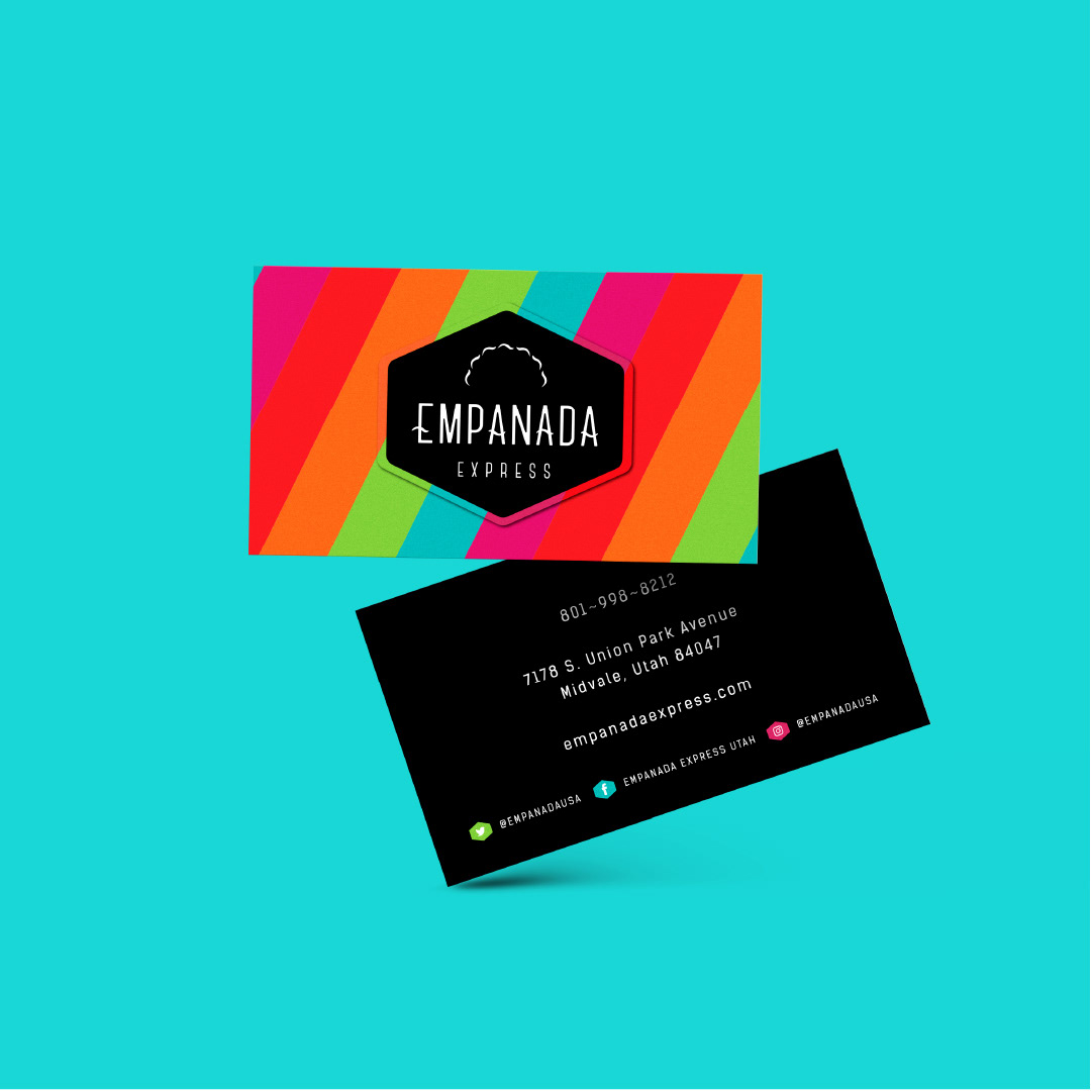 Logo suite and branding for a homemade empanada fast-casual restaurant. The branding is clean, and the colors are bold to match the colorful flavors of their food.